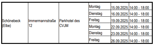 Wir nehmen immer gerne Sachspenden an. Hier findet ihr die verschiedenen Annahmestellen und ihre Zeiten: